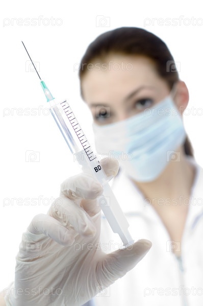 Доктор держит шприц в руке