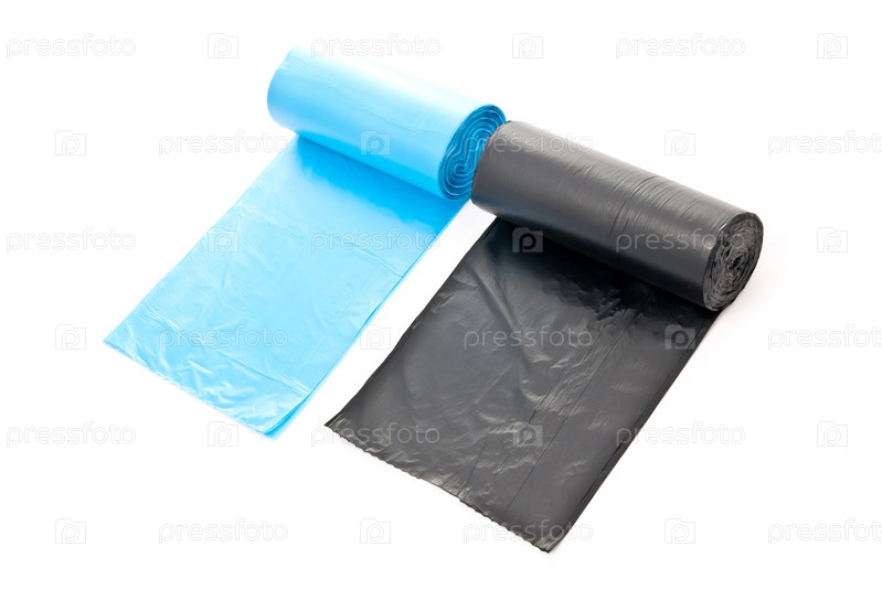 Два полиэтиленовых мешка для мусора на белом фоне