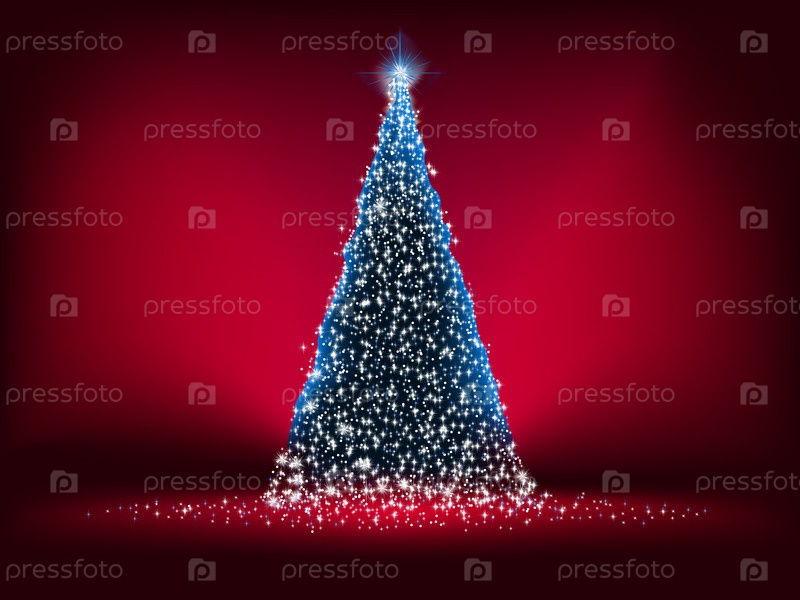 Иллюстрация с рождественским деревом на красном фоне