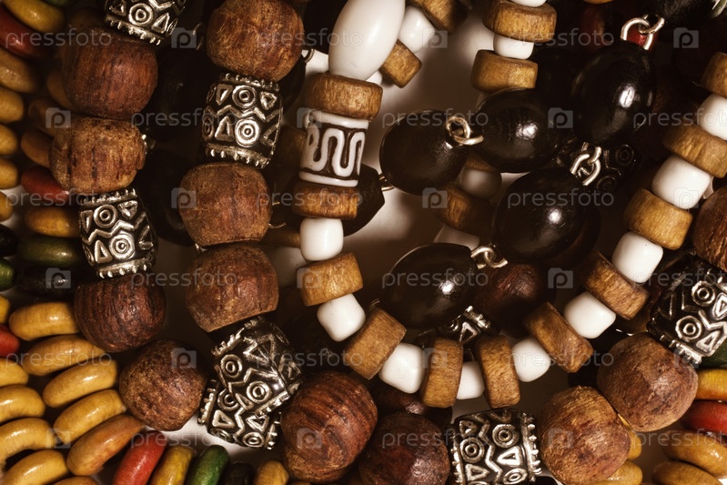 Деревянные браслеты и бусы крупным планом