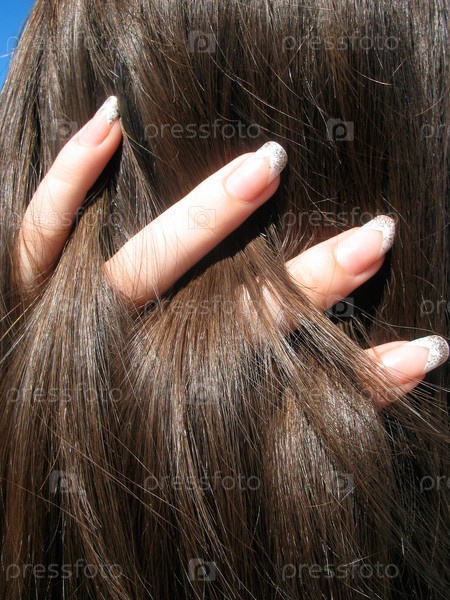 Женские пальцы в длинных темных волосах