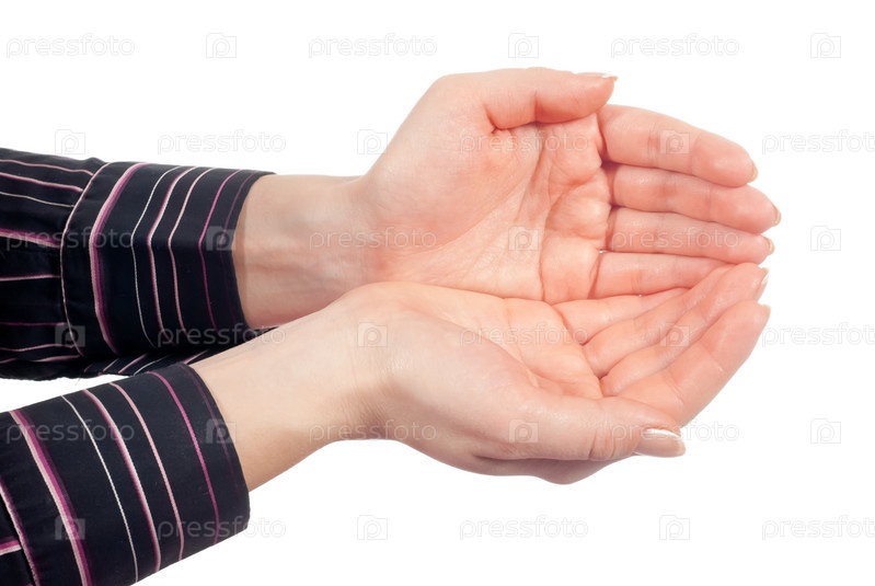 Женские руки, сложенные пригоршней. Изолированы на белом фоне