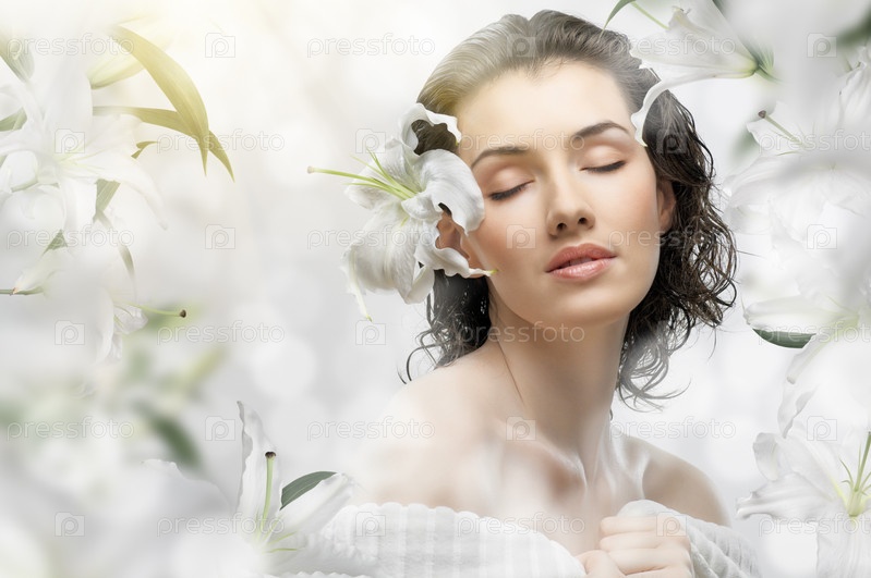 Красивая девушка в цветнике