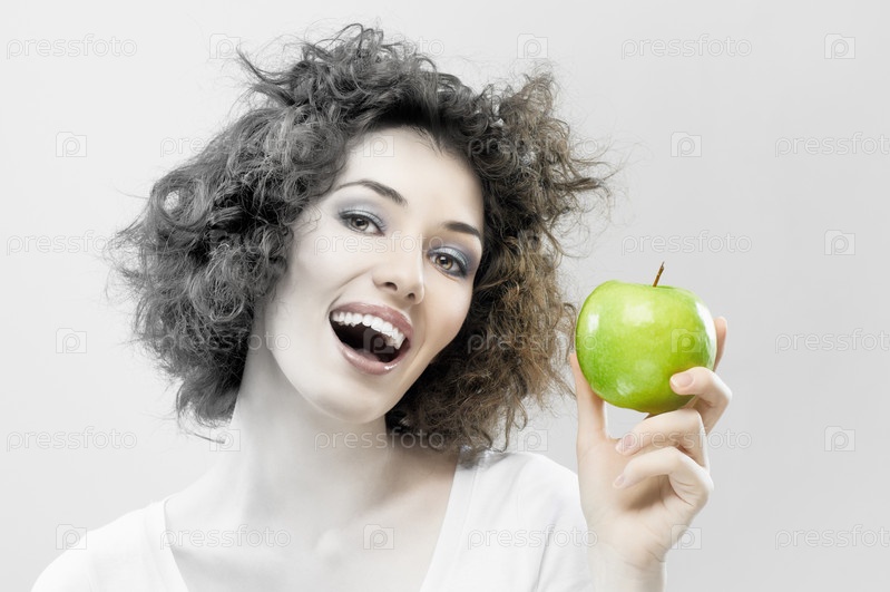 Красивая девушка с зеленым яблоком
