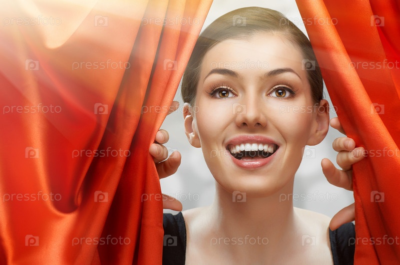 Красивая девушка смотрит из-за кулис