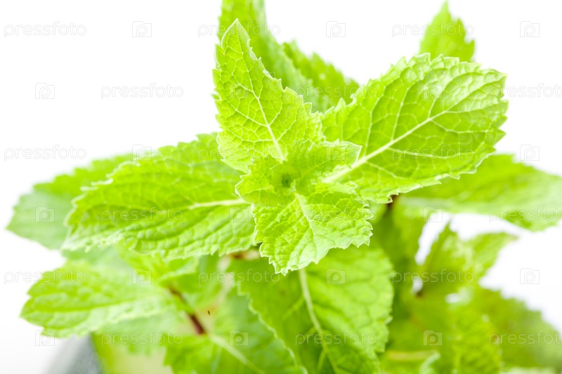 Мята крупным планом на белом фоне