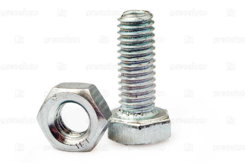 Гайка и винт на белом фоне