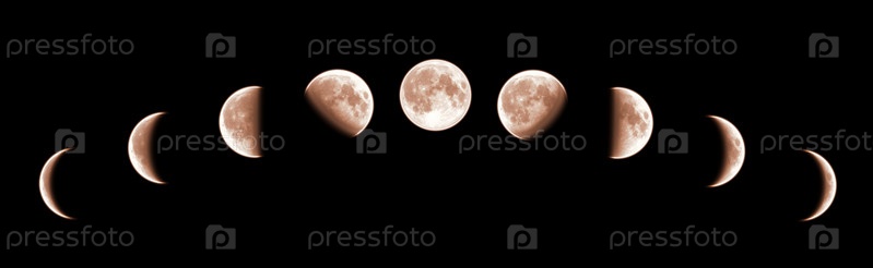 Девять фаз полного цикла роста луны на черном фоне