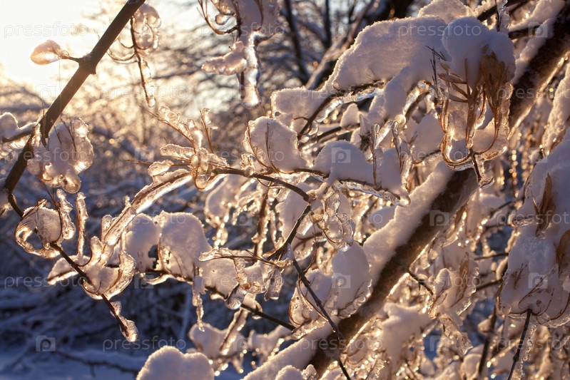Обледеневшие ветви деревьев