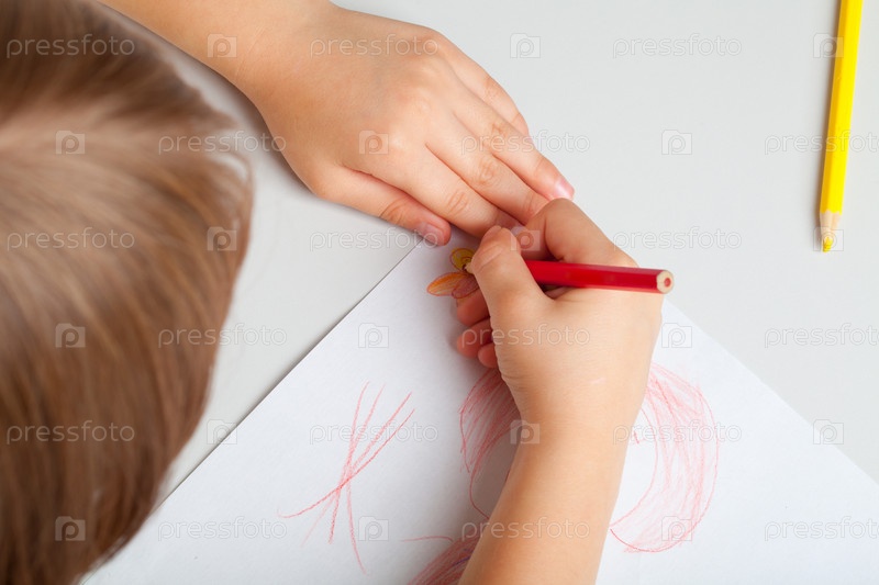 Ребенок рисует цветными карандашами
