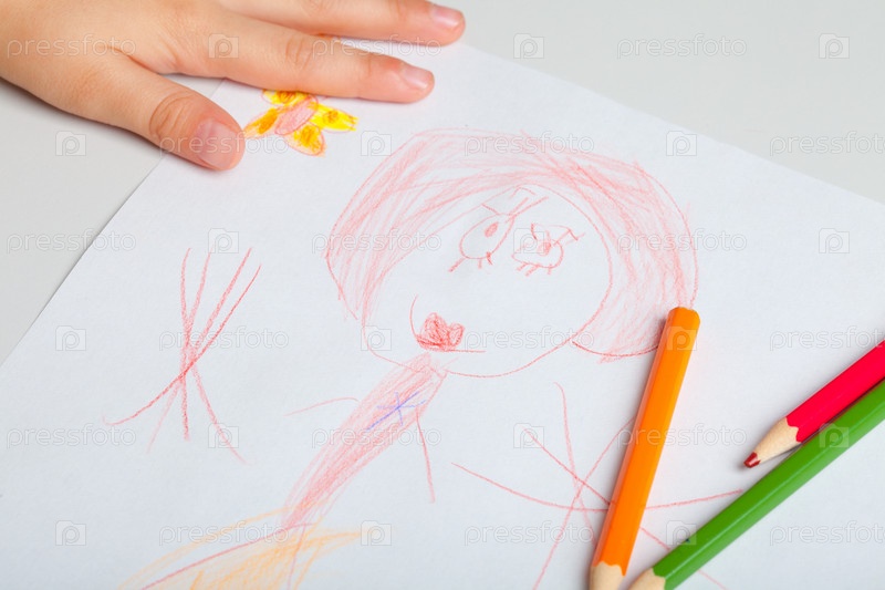 Ребенок рисует цветными карандашами