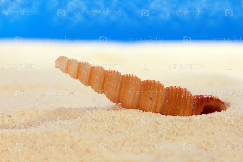 Морская ракушка на песчаном пляже