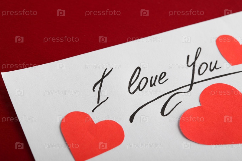 Листок с сердцами и надписью 'Я люблю тебя'