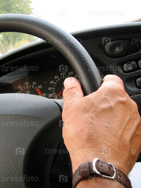 Рука водителя на руле автомобиля
