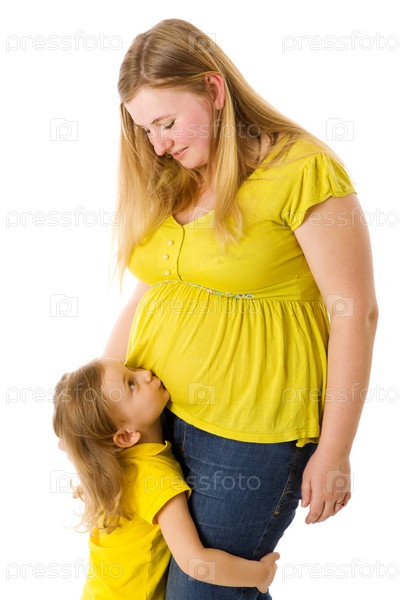 Мать и дочь позируют вместе, изолированные на белом фоне