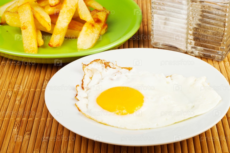 Жареное яйцо с картофелем на столе