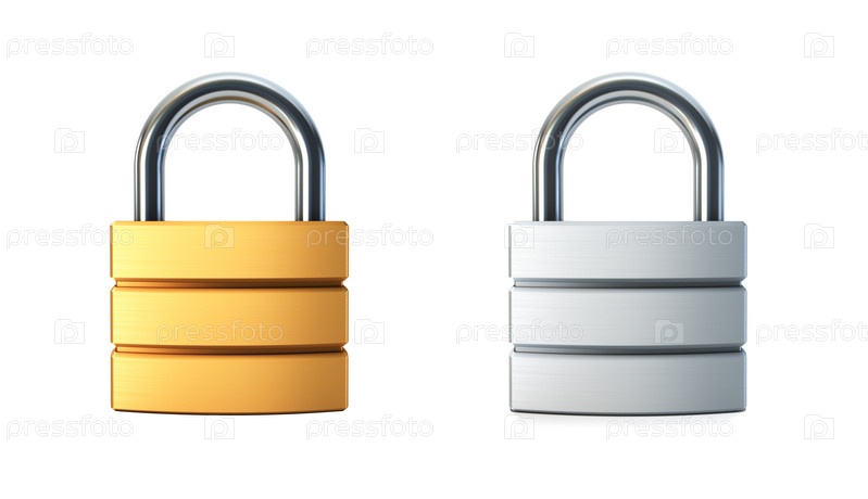 Два металлических закрытых навесного замка на белом фоне, 3D-графики