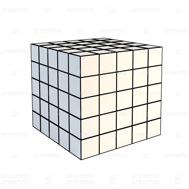 Гранированный белый куб на белом фоне, 3D-графика