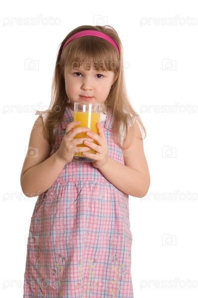 Девочка пьет апельсиновый сок