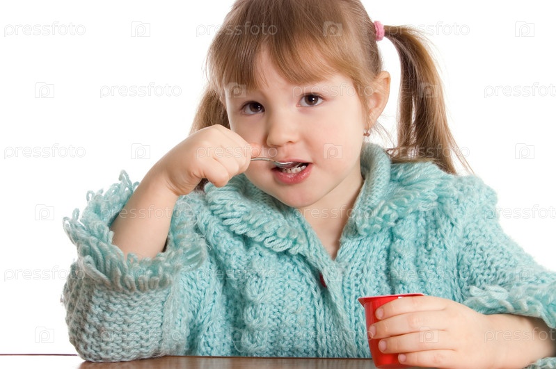 Маленькая девочка с баночкой йогурта