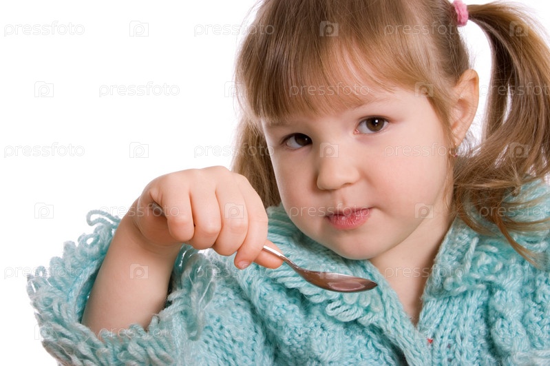 Маленькая девочка с ложкой на белом фоне
