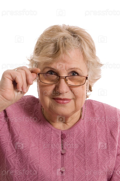 Пожилая женщина на белом фоне