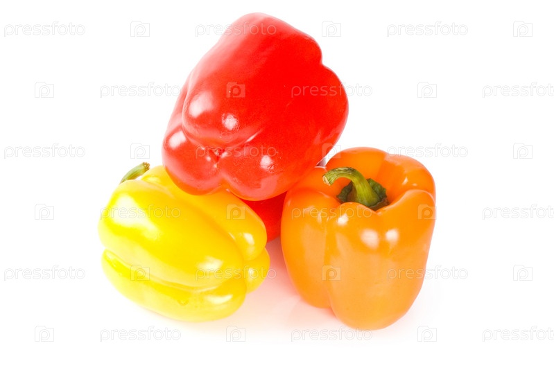 Три разноцветных перца изолированы на белом