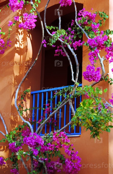 Балкон в цветах бугенвилии, Пелопоннес, Греция