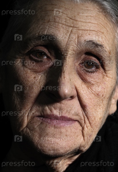 Портрет задумчивой пожилой женщины крупным планом