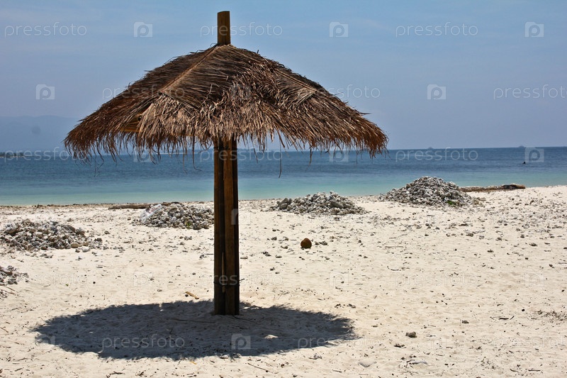 Пальмовый зонтик на пляже