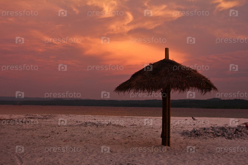 Пальмовый зонтик на пляже
