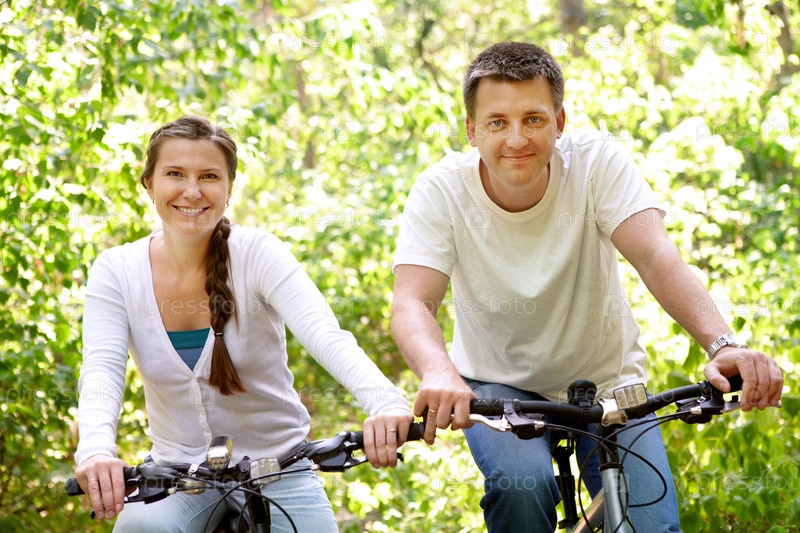 Женщина и мужчина едут на велосипедах