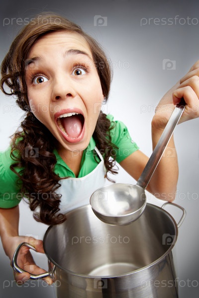 Девушка с ковшом и кастрюлей