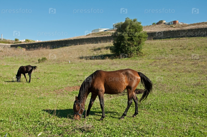 Лошади пасутся на лужайке