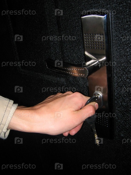 Рука открывает дверь ключом