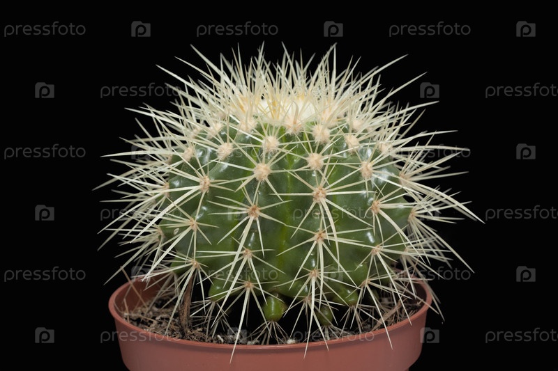 Зеленый кактус на черном фоне