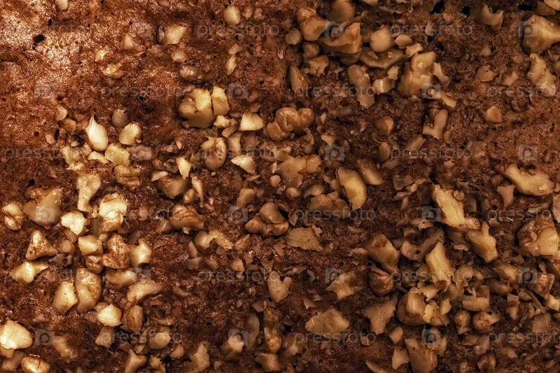 Торт, посыпанный грецким орехом, крупный план, фон