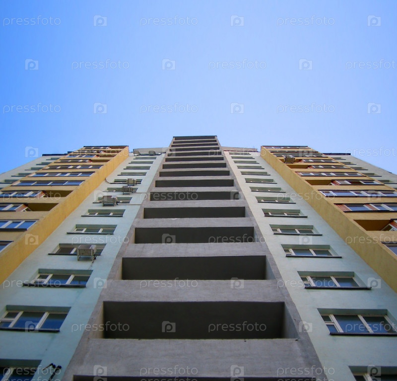Многоэтажный жилой дом, перспектива на фоне неба