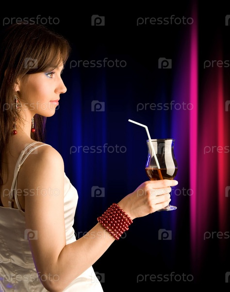 Портрет молодой девушки с коктейлем в руках