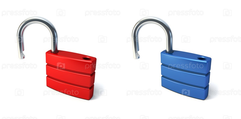 Металлические открытые замки, изолированные на белом цвете, 3D