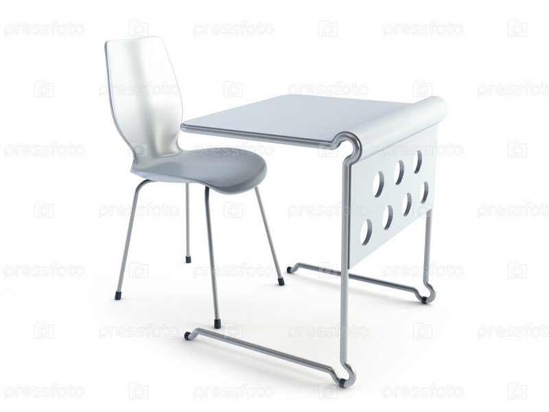 Современный стул и стол, изолированные на белом. 3D