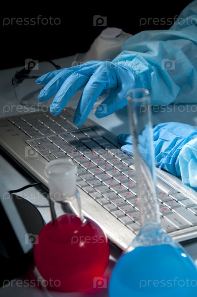 Ученый работает за компьютером в лаборатории