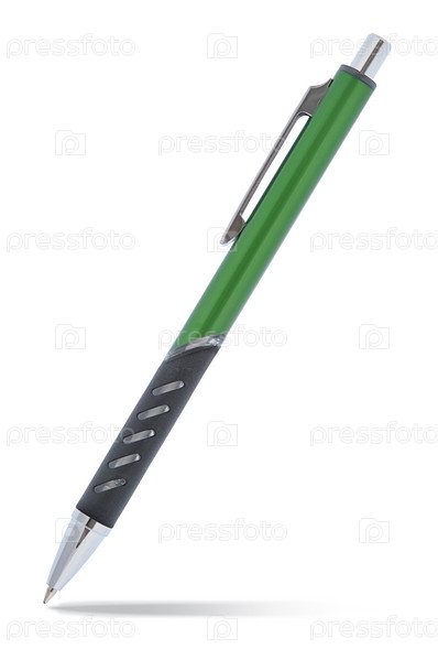Зелёная шариковая (или роликовая) ручка, изолированная на белом фоне