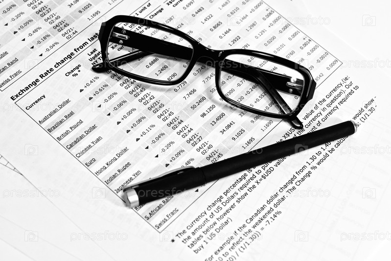 Очки, финансовые документы и карандаш