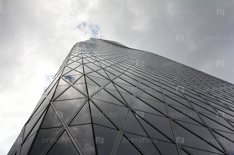 Современное здание на фоне серого неба