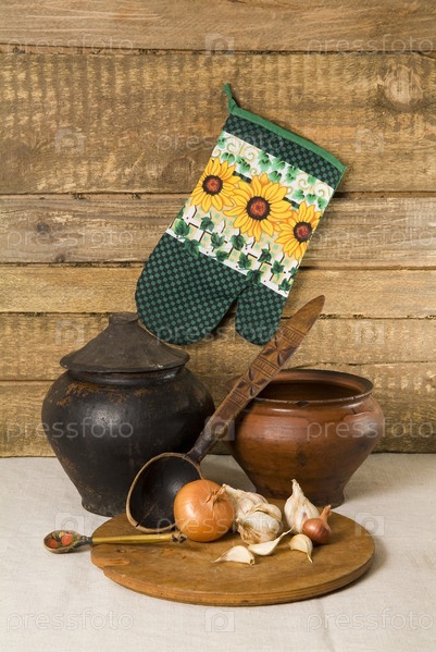 Деревенский натюрморт с луком и старинной утварью