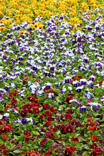 Клумба с разноцветными анютиными глазками