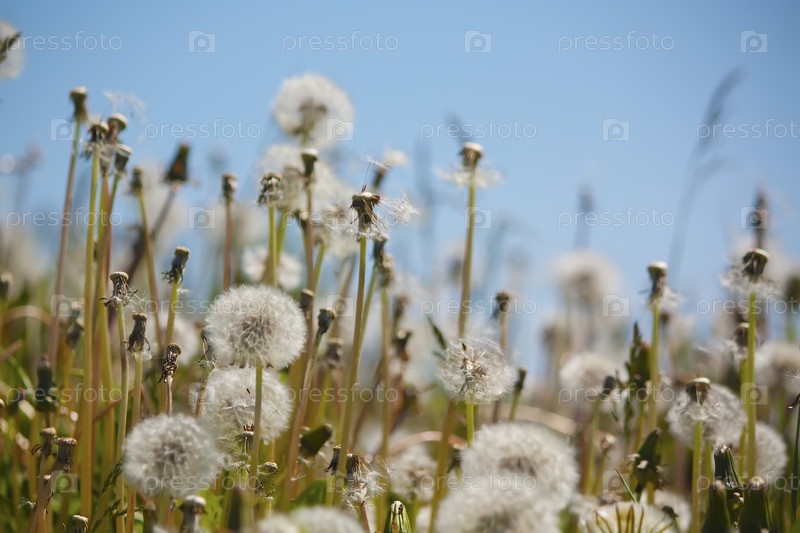Одуванчики на фоне голубого неба