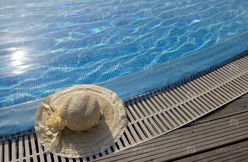 Соломенная шляпа, лежащая на краю бассейна