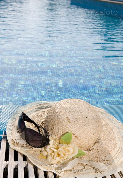 Соломенная шляпа, лежащая на краю бассейна